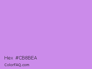 Hex #cb8bea Color is a light purple color and the nearest color is Bright Lilac #d891ef. Hex code #cb8bea and RGB value is rgb(203,139,234). In RGB color space, this color is composed of 80% red, 55% green, 92% blue, In CMYK color space, this color is composed of 13% cyan, 41% magenta, 0% yellow , 8% black , In HSL color space, this color has a hue angle of 280° , 69% saturation and 73% lightness.