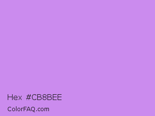 Hex #cb8bee Color is a light purple color and the nearest color is Bright Lilac #d891ef. Hex code #cb8bee and RGB value is rgb(203,139,238). In RGB color space, this color is composed of 80% red, 55% green, 93% blue, In CMYK color space, this color is composed of 15% cyan, 42% magenta, 0% yellow , 7% black , In HSL color space, this color has a hue angle of 279° , 74% saturation and 74% lightness.
