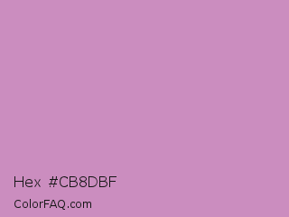Hex #cb8dbf Color is a light magenta color and the nearest color is Pastel Violet #cb99c9. Hex code #cb8dbf and RGB value is rgb(203,141,191). In RGB color space, this color is composed of 80% red, 55% green, 75% blue, In CMYK color space, this color is composed of 0% cyan, 31% magenta, 6% yellow , 20% black , In HSL color space, this color has a hue angle of 312° , 37% saturation and 67% lightness.