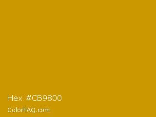 Hex #cb9800 Color is a normal orange color and the nearest color is Vivid Amber #cc9900. Hex code #cb9800 and RGB value is rgb(203,152,0). In RGB color space, this color is composed of 80% red, 60% green, 0% blue, In CMYK color space, this color is composed of 0% cyan, 25% magenta, 100% yellow , 20% black , In HSL color space, this color has a hue angle of 45° , 100% saturation and 40% lightness.