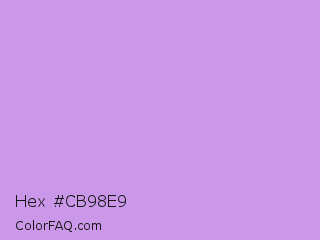 Hex #cb98e9 Color is a light purple color and the nearest color is Bright Ube #d19fe8. Hex code #cb98e9 and RGB value is rgb(203,152,233). In RGB color space, this color is composed of 80% red, 60% green, 91% blue, In CMYK color space, this color is composed of 13% cyan, 35% magenta, 0% yellow , 9% black , In HSL color space, this color has a hue angle of 278° , 65% saturation and 75% lightness.