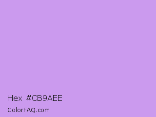 Hex #cb9aee Color is a light purple color and the nearest color is Bright Ube #d19fe8. Hex code #cb9aee and RGB value is rgb(203,154,238). In RGB color space, this color is composed of 80% red, 60% green, 93% blue, In CMYK color space, this color is composed of 15% cyan, 35% magenta, 0% yellow , 7% black , In HSL color space, this color has a hue angle of 275° , 71% saturation and 77% lightness.