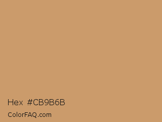 Hex #cb9b6b Color is a light orange color and the nearest color is Brown Yellow #cc9966. Hex code #cb9b6b and RGB value is rgb(203,155,107). In RGB color space, this color is composed of 80% red, 61% green, 42% blue, In CMYK color space, this color is composed of 0% cyan, 24% magenta, 47% yellow , 20% black , In HSL color space, this color has a hue angle of 30° , 48% saturation and 61% lightness.