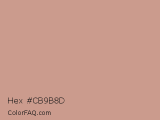 Hex #cb9b8d Color is a light red color and the nearest color is Oriental Pink #c69191. Hex code #cb9b8d and RGB value is rgb(203,155,141). In RGB color space, this color is composed of 80% red, 61% green, 55% blue, In CMYK color space, this color is composed of 0% cyan, 24% magenta, 31% yellow , 20% black , In HSL color space, this color has a hue angle of 14° , 37% saturation and 67% lightness.