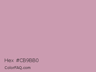 Hex #cb9bb0 Color is a light rose color and the nearest color is Careys Pink #d29eaa. Hex code #cb9bb0 and RGB value is rgb(203,155,176). In RGB color space, this color is composed of 80% red, 61% green, 69% blue, In CMYK color space, this color is composed of 0% cyan, 24% magenta, 13% yellow , 20% black , In HSL color space, this color has a hue angle of 334° , 32% saturation and 70% lightness.