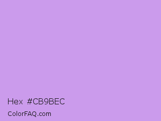 Hex #cb9bec Color is a light purple color and the nearest color is Bright Ube #d19fe8. Hex code #cb9bec and RGB value is rgb(203,155,236). In RGB color space, this color is composed of 80% red, 61% green, 93% blue, In CMYK color space, this color is composed of 14% cyan, 34% magenta, 0% yellow , 7% black , In HSL color space, this color has a hue angle of 276° , 68% saturation and 77% lightness.