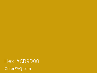 Hex #cb9d08 Color is a normal yellow color and the nearest color is Vivid Amber #cc9900. Hex code #cb9d08 and RGB value is rgb(203,157,8). In RGB color space, this color is composed of 80% red, 62% green, 3% blue, In CMYK color space, this color is composed of 0% cyan, 23% magenta, 96% yellow , 20% black , In HSL color space, this color has a hue angle of 46° , 92% saturation and 41% lightness.