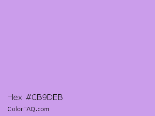 Hex #cb9deb Color is a light purple color and the nearest color is Bright Ube #d19fe8. Hex code #cb9deb and RGB value is rgb(203,157,235). In RGB color space, this color is composed of 80% red, 62% green, 92% blue, In CMYK color space, this color is composed of 14% cyan, 33% magenta, 0% yellow , 8% black , In HSL color space, this color has a hue angle of 275° , 66% saturation and 77% lightness.
