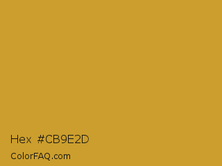 Hex #cb9e2d Color is a normal orange color and the nearest color is Satin Sheen Gold #cba135. Hex code #cb9e2d and RGB value is rgb(203,158,45). In RGB color space, this color is composed of 80% red, 62% green, 18% blue, In CMYK color space, this color is composed of 0% cyan, 22% magenta, 78% yellow , 20% black , In HSL color space, this color has a hue angle of 43° , 64% saturation and 49% lightness.