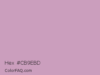 Hex #cb9ebd Color is a light magenta color and the nearest color is Lilac #c8a2c8. Hex code #cb9ebd and RGB value is rgb(203,158,189). In RGB color space, this color is composed of 80% red, 62% green, 74% blue, In CMYK color space, this color is composed of 0% cyan, 22% magenta, 7% yellow , 20% black , In HSL color space, this color has a hue angle of 319° , 30% saturation and 71% lightness.