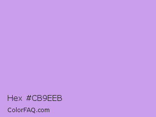 Hex #cb9eeb Color is a light purple color and the nearest color is Bright Ube #d19fe8. Hex code #cb9eeb and RGB value is rgb(203,158,235). In RGB color space, this color is composed of 80% red, 62% green, 92% blue, In CMYK color space, this color is composed of 14% cyan, 33% magenta, 0% yellow , 8% black , In HSL color space, this color has a hue angle of 275° , 66% saturation and 77% lightness.