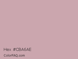 Hex #cba6ae Color is a light red color and the nearest color is Silver Pink #c4aead. Hex code #cba6ae and RGB value is rgb(203,166,174). In RGB color space, this color is composed of 80% red, 65% green, 68% blue, In CMYK color space, this color is composed of 0% cyan, 18% magenta, 14% yellow , 20% black , In HSL color space, this color has a hue angle of 347° , 26% saturation and 72% lightness.