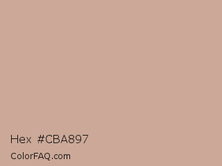Hex #cba897 Color is a light orange color and the nearest color is Eunry #cfa39d. Hex code #cba897 and RGB value is rgb(203,168,151). In RGB color space, this color is composed of 80% red, 66% green, 59% blue, In CMYK color space, this color is composed of 0% cyan, 17% magenta, 26% yellow , 20% black , In HSL color space, this color has a hue angle of 20° , 33% saturation and 69% lightness.