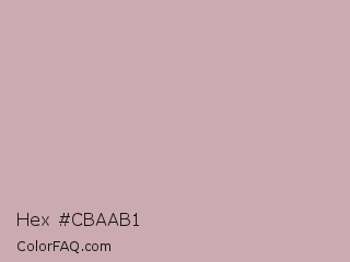 Hex #cbaab1 Color is a light red color and the nearest color is Silver Pink #c4aead. Hex code #cbaab1 and RGB value is rgb(203,170,177). In RGB color space, this color is composed of 80% red, 67% green, 69% blue, In CMYK color space, this color is composed of 0% cyan, 16% magenta, 13% yellow , 20% black , In HSL color space, this color has a hue angle of 347° , 24% saturation and 73% lightness.
