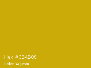 Hex #cbab08 Color is a normal yellow color and the nearest color is Buddha Gold #c1a004. Hex code #cbab08 and RGB value is rgb(203,171,8). In RGB color space, this color is composed of 80% red, 67% green, 3% blue, In CMYK color space, this color is composed of 0% cyan, 16% magenta, 96% yellow , 20% black , In HSL color space, this color has a hue angle of 50° , 92% saturation and 41% lightness.