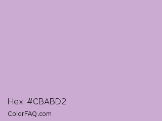 Hex #cbabd2 Color is a light purple color and the nearest color is Lilac #c8a2c8. Hex code #cbabd2 and RGB value is rgb(203,171,210). In RGB color space, this color is composed of 80% red, 67% green, 82% blue, In CMYK color space, this color is composed of 3% cyan, 19% magenta, 0% yellow , 18% black , In HSL color space, this color has a hue angle of 289° , 30% saturation and 75% lightness.