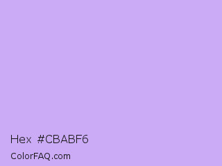 Hex #cbabf6 Color is a very light violet color and the nearest color is Bright Ube #d19fe8. Hex code #cbabf6 and RGB value is rgb(203,171,246). In RGB color space, this color is composed of 80% red, 67% green, 96% blue, In CMYK color space, this color is composed of 17% cyan, 30% magenta, 0% yellow , 4% black , In HSL color space, this color has a hue angle of 266° , 81% saturation and 82% lightness.