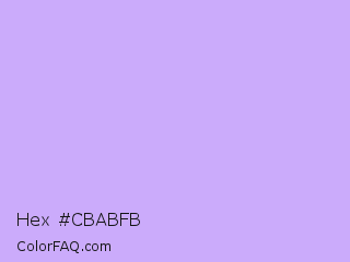 Hex #cbabfb Color is a very light violet color and the nearest color is Pale Violet #cc99ff. Hex code #cbabfb and RGB value is rgb(203,171,251). In RGB color space, this color is composed of 80% red, 67% green, 98% blue, In CMYK color space, this color is composed of 19% cyan, 32% magenta, 0% yellow , 2% black , In HSL color space, this color has a hue angle of 264° , 91% saturation and 83% lightness.