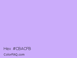 Hex #cbacfb Color is a very light violet color and the nearest color is Perfume #d0bef8. Hex code #cbacfb and RGB value is rgb(203,172,251). In RGB color space, this color is composed of 80% red, 67% green, 98% blue, In CMYK color space, this color is composed of 19% cyan, 31% magenta, 0% yellow , 2% black , In HSL color space, this color has a hue angle of 264° , 91% saturation and 83% lightness.