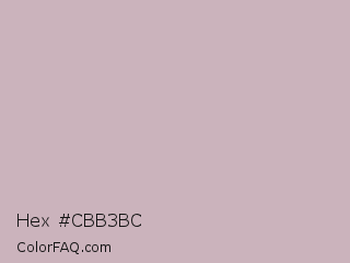 Hex #cbb3bc Color is a light rose color and the nearest color is Cold Turkey #cebaba. Hex code #cbb3bc and RGB value is rgb(203,179,188). In RGB color space, this color is composed of 80% red, 70% green, 74% blue, In CMYK color space, this color is composed of 0% cyan, 12% magenta, 7% yellow , 20% black , In HSL color space, this color has a hue angle of 338° , 19% saturation and 75% lightness.