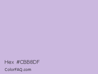 Hex #cbb8df Color is a light violet color and the nearest color is Prelude #d0c0e5. Hex code #cbb8df and RGB value is rgb(203,184,223). In RGB color space, this color is composed of 80% red, 72% green, 87% blue, In CMYK color space, this color is composed of 9% cyan, 17% magenta, 0% yellow , 13% black , In HSL color space, this color has a hue angle of 269° , 38% saturation and 80% lightness.