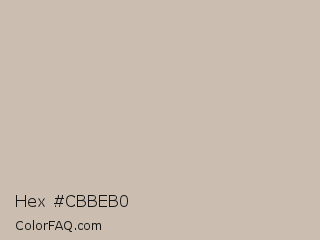 Hex #cbbeb0 Color is a light orange color and the nearest color is Ash #c6c3b5. Hex code #cbbeb0 and RGB value is rgb(203,190,176). In RGB color space, this color is composed of 80% red, 75% green, 69% blue, In CMYK color space, this color is composed of 0% cyan, 6% magenta, 13% yellow , 20% black , In HSL color space, this color has a hue angle of 31° , 21% saturation and 74% lightness.