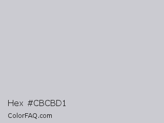 Hex #cbcbd1 Color is a very light blue color and the nearest color is Ghost #c7c9d5. Hex code #cbcbd1 and RGB value is rgb(203,203,209). In RGB color space, this color is composed of 80% red, 80% green, 82% blue, In CMYK color space, this color is composed of 3% cyan, 3% magenta, 0% yellow , 18% black , In HSL color space, this color has a hue angle of 240° , 6% saturation and 81% lightness.