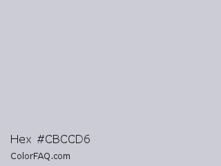 Hex #cbccd6 Color is a very light blue color and the nearest color is Ghost #c7c9d5. Hex code #cbccd6 and RGB value is rgb(203,204,214). In RGB color space, this color is composed of 80% red, 80% green, 84% blue, In CMYK color space, this color is composed of 5% cyan, 5% magenta, 0% yellow , 16% black , In HSL color space, this color has a hue angle of 235° , 12% saturation and 82% lightness.