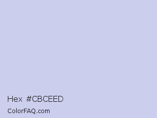 Hex #cbceed Color is a very light blue color and the nearest color is Soap #cec8ef. Hex code #cbceed and RGB value is rgb(203,206,237). In RGB color space, this color is composed of 80% red, 81% green, 93% blue, In CMYK color space, this color is composed of 14% cyan, 13% magenta, 0% yellow , 7% black , In HSL color space, this color has a hue angle of 235° , 49% saturation and 86% lightness.