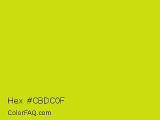 Hex #cbdc0f Color is a normal yellow color and the nearest color is Bitter Lemon #cae00d. Hex code #cbdc0f and RGB value is rgb(203,220,15). In RGB color space, this color is composed of 80% red, 86% green, 6% blue, In CMYK color space, this color is composed of 8% cyan, 0% magenta, 93% yellow , 14% black , In HSL color space, this color has a hue angle of 65° , 87% saturation and 46% lightness.