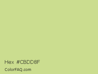 Hex #cbdd8f Color is a light lime color and the nearest color is Medium Spring Bud #c9dc87. Hex code #cbdd8f and RGB value is rgb(203,221,143). In RGB color space, this color is composed of 80% red, 87% green, 56% blue, In CMYK color space, this color is composed of 8% cyan, 0% magenta, 35% yellow , 13% black , In HSL color space, this color has a hue angle of 74° , 53% saturation and 71% lightness.