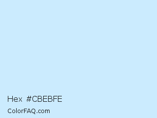 Hex #cbebfe Color is a very light blue color and the nearest color is Onahau #cdf4ff. Hex code #cbebfe and RGB value is rgb(203,235,254). In RGB color space, this color is composed of 80% red, 92% green, 100% blue, In CMYK color space, this color is composed of 20% cyan, 7% magenta, 0% yellow , 0% black , In HSL color space, this color has a hue angle of 202° , 96% saturation and 90% lightness.