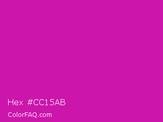 Hex #cc15ab Color is a normal magenta color and the nearest color is Royal Fuchsia #ca2c92. Hex code #cc15ab and RGB value is rgb(204,21,171). In RGB color space, this color is composed of 80% red, 8% green, 67% blue, In CMYK color space, this color is composed of 0% cyan, 90% magenta, 16% yellow , 20% black , In HSL color space, this color has a hue angle of 311° , 81% saturation and 44% lightness.