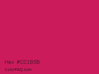 Hex #cc1b5b Color is a normal rose color and the nearest color is Rose Red #c21e56. Hex code #cc1b5b and RGB value is rgb(204,27,91). In RGB color space, this color is composed of 80% red, 11% green, 36% blue, In CMYK color space, this color is composed of 0% cyan, 87% magenta, 55% yellow , 20% black , In HSL color space, this color has a hue angle of 338° , 77% saturation and 45% lightness.