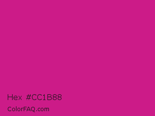 Hex #cc1b88 Color is a normal magenta color and the nearest color is Red Violet #c71585. Hex code #cc1b88 and RGB value is rgb(204,27,136). In RGB color space, this color is composed of 80% red, 11% green, 53% blue, In CMYK color space, this color is composed of 0% cyan, 87% magenta, 33% yellow , 20% black , In HSL color space, this color has a hue angle of 323° , 77% saturation and 45% lightness.