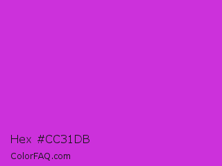Hex #cc31db Color is a normal magenta color and the nearest color is Steel Pink #cc33cc. Hex code #cc31db and RGB value is rgb(204,49,219). In RGB color space, this color is composed of 80% red, 19% green, 86% blue, In CMYK color space, this color is composed of 7% cyan, 78% magenta, 0% yellow , 14% black , In HSL color space, this color has a hue angle of 295° , 70% saturation and 53% lightness.