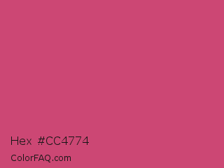 Hex #cc4774 Color is a normal rose color and the nearest color is Ruber #ce4676. Hex code #cc4774 and RGB value is rgb(204,71,116). In RGB color space, this color is composed of 80% red, 28% green, 45% blue, In CMYK color space, this color is composed of 0% cyan, 65% magenta, 43% yellow , 20% black , In HSL color space, this color has a hue angle of 340° , 57% saturation and 54% lightness.