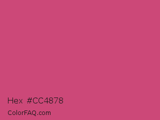 Hex #cc4878 Color is a normal rose color and the nearest color is Ruber #ce4676. Hex code #cc4878 and RGB value is rgb(204,72,120). In RGB color space, this color is composed of 80% red, 28% green, 47% blue, In CMYK color space, this color is composed of 0% cyan, 65% magenta, 41% yellow , 20% black , In HSL color space, this color has a hue angle of 338° , 56% saturation and 54% lightness.