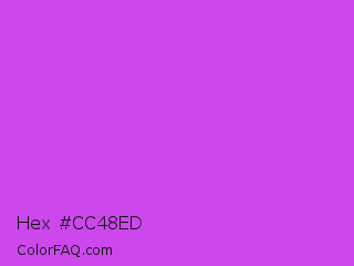 Hex #cc48ed Color is a light purple color and the nearest color is Medium Orchid #ba55d3. Hex code #cc48ed and RGB value is rgb(204,72,237). In RGB color space, this color is composed of 80% red, 28% green, 93% blue, In CMYK color space, this color is composed of 14% cyan, 70% magenta, 0% yellow , 7% black , In HSL color space, this color has a hue angle of 288° , 82% saturation and 61% lightness.