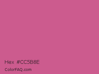 Hex #cc5b8e Color is a normal rose color and the nearest color is Cinnamon Satin #cd607e. Hex code #cc5b8e and RGB value is rgb(204,91,142). In RGB color space, this color is composed of 80% red, 36% green, 56% blue, In CMYK color space, this color is composed of 0% cyan, 55% magenta, 30% yellow , 20% black , In HSL color space, this color has a hue angle of 333° , 53% saturation and 58% lightness.