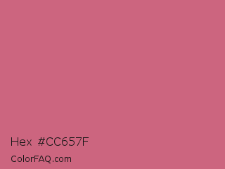 Hex #cc657f Color is a normal red color and the nearest color is Cinnamon Satin #cd607e. Hex code #cc657f and RGB value is rgb(204,101,127). In RGB color space, this color is composed of 80% red, 40% green, 50% blue, In CMYK color space, this color is composed of 0% cyan, 50% magenta, 38% yellow , 20% black , In HSL color space, this color has a hue angle of 345° , 50% saturation and 60% lightness.