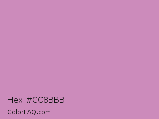 Hex #cc8bbb Color is a light magenta color and the nearest color is Middle Purple #d982b5. Hex code #cc8bbb and RGB value is rgb(204,139,187). In RGB color space, this color is composed of 80% red, 55% green, 73% blue, In CMYK color space, this color is composed of 0% cyan, 32% magenta, 8% yellow , 20% black , In HSL color space, this color has a hue angle of 316° , 39% saturation and 67% lightness.