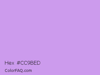 Hex #cc9bed Color is a light purple color and the nearest color is Bright Ube #d19fe8. Hex code #cc9bed and RGB value is rgb(204,155,237). In RGB color space, this color is composed of 80% red, 61% green, 93% blue, In CMYK color space, this color is composed of 14% cyan, 35% magenta, 0% yellow , 7% black , In HSL color space, this color has a hue angle of 276° , 69% saturation and 77% lightness.