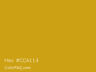 Hex #cca114 Color is a normal yellow color and the nearest color is Lemon Curry #cca01d. Hex code #cca114 and RGB value is rgb(204,161,20). In RGB color space, this color is composed of 80% red, 63% green, 8% blue, In CMYK color space, this color is composed of 0% cyan, 21% magenta, 90% yellow , 20% black , In HSL color space, this color has a hue angle of 46° , 82% saturation and 44% lightness.
