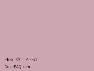 Hex #cca7b1 Color is a light rose color and the nearest color is Silver Pink #c4aead. Hex code #cca7b1 and RGB value is rgb(204,167,177). In RGB color space, this color is composed of 80% red, 65% green, 69% blue, In CMYK color space, this color is composed of 0% cyan, 18% magenta, 13% yellow , 20% black , In HSL color space, this color has a hue angle of 344° , 27% saturation and 73% lightness.