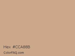 Hex #cca88b Color is a light orange color and the nearest color is Indian Khaki #c3b091. Hex code #cca88b and RGB value is rgb(204,168,139). In RGB color space, this color is composed of 80% red, 66% green, 55% blue, In CMYK color space, this color is composed of 0% cyan, 18% magenta, 32% yellow , 20% black , In HSL color space, this color has a hue angle of 27° , 39% saturation and 67% lightness.