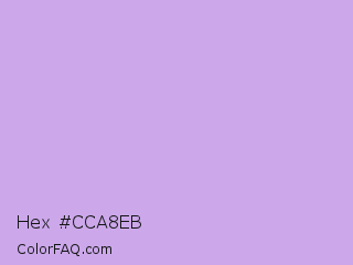 Hex #cca8eb Color is a light purple color and the nearest color is Bright Ube #d19fe8. Hex code #cca8eb and RGB value is rgb(204,168,235). In RGB color space, this color is composed of 80% red, 66% green, 92% blue, In CMYK color space, this color is composed of 13% cyan, 29% magenta, 0% yellow , 8% black , In HSL color space, this color has a hue angle of 272° , 63% saturation and 79% lightness.