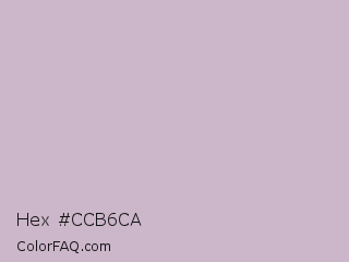 Hex #ccb6ca Color is a light magenta color and the nearest color is Gray Suit #c1becd. Hex code #ccb6ca and RGB value is rgb(204,182,202). In RGB color space, this color is composed of 80% red, 71% green, 79% blue, In CMYK color space, this color is composed of 0% cyan, 11% magenta, 1% yellow , 20% black , In HSL color space, this color has a hue angle of 305° , 18% saturation and 76% lightness.