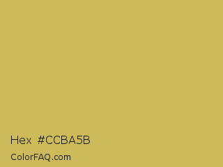 Hex #ccba5b Color is a normal yellow color and the nearest color is Sundance #c9b35b. Hex code #ccba5b and RGB value is rgb(204,186,91). In RGB color space, this color is composed of 80% red, 73% green, 36% blue, In CMYK color space, this color is composed of 0% cyan, 9% magenta, 55% yellow , 20% black , In HSL color space, this color has a hue angle of 50° , 53% saturation and 58% lightness.