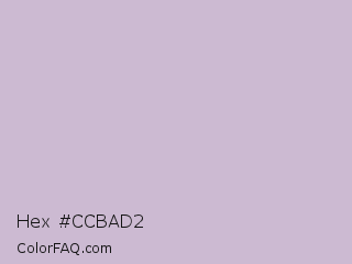 Hex #ccbad2 Color is a light purple color and the nearest color is Lavender Gray #c4c3d0. Hex code #ccbad2 and RGB value is rgb(204,186,210). In RGB color space, this color is composed of 80% red, 73% green, 82% blue, In CMYK color space, this color is composed of 3% cyan, 11% magenta, 0% yellow , 18% black , In HSL color space, this color has a hue angle of 285° , 21% saturation and 78% lightness.